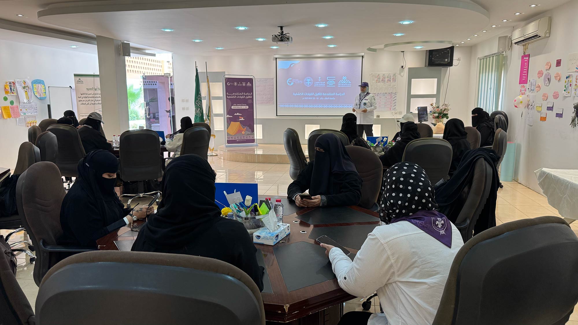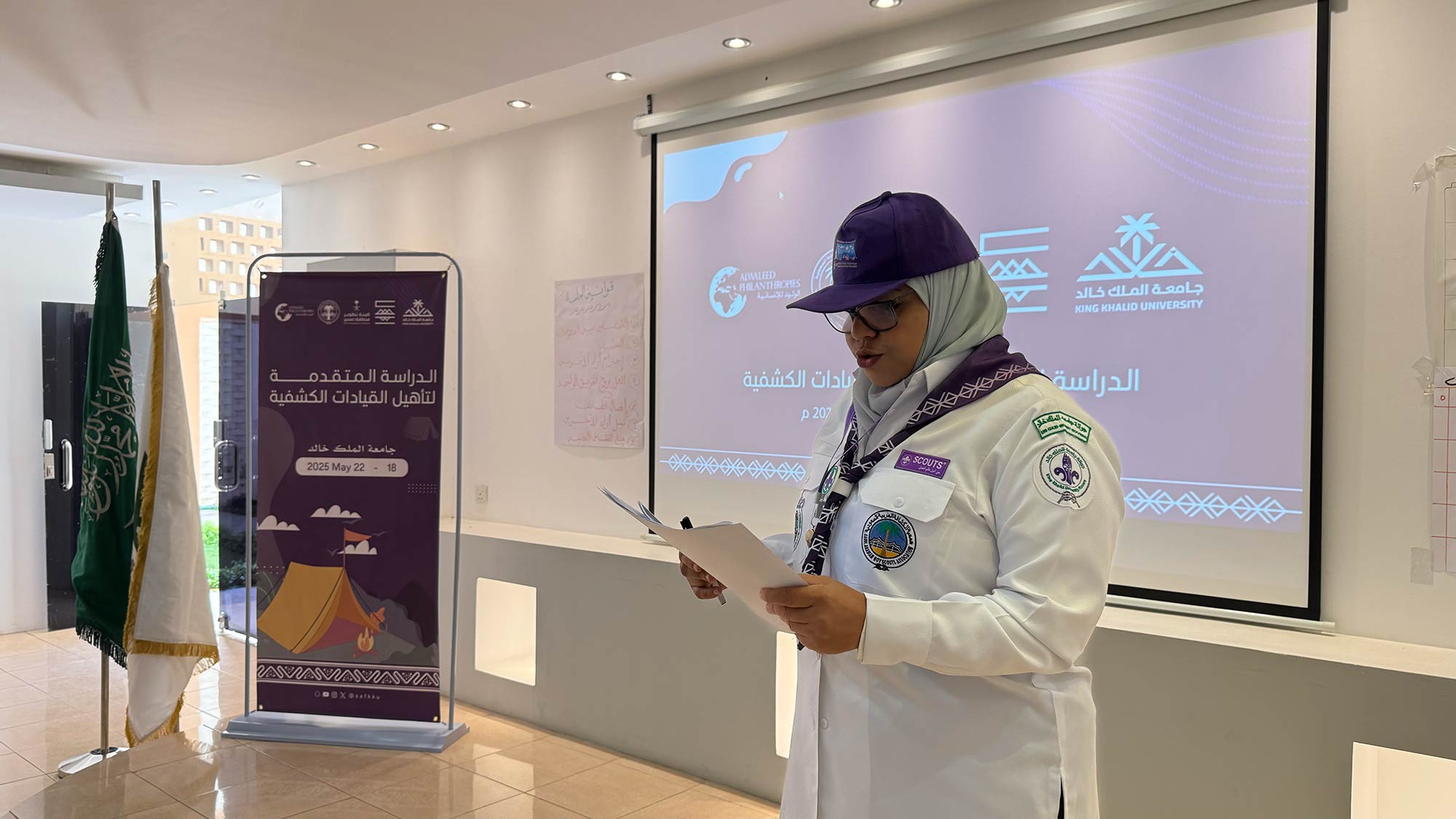 بالشراكة مع مؤسسة الوليد للإنسانية، التي يرأسها صاحب السمو الملكي الأمير الوليد بن طلال، و جمعية الكشافة العربية السعودية، اختُتمت بجامعة الملك خالد اليوم الخميس، فعاليات الدراسة الكشفية المتقدمة للشارة الخشبية في نسختها الثانية، بتنظيم من عمادة شؤون الطلاب. وذلك بمشاركة 26 جوالة من مختلف القطاعات الكشفية النسائية، والتي استمرت خلال الفترة من 18 إلى 22 مايو 2025م في مدينة أبها، بقيادة سبع قائدات مؤهلات، قدّمن محتوى تدريبيًا متقدمًا ضمن برامج التأهيل المتقدمة التي تستهدف تعزيز المهارات القيادية والكشفية للفتيات.