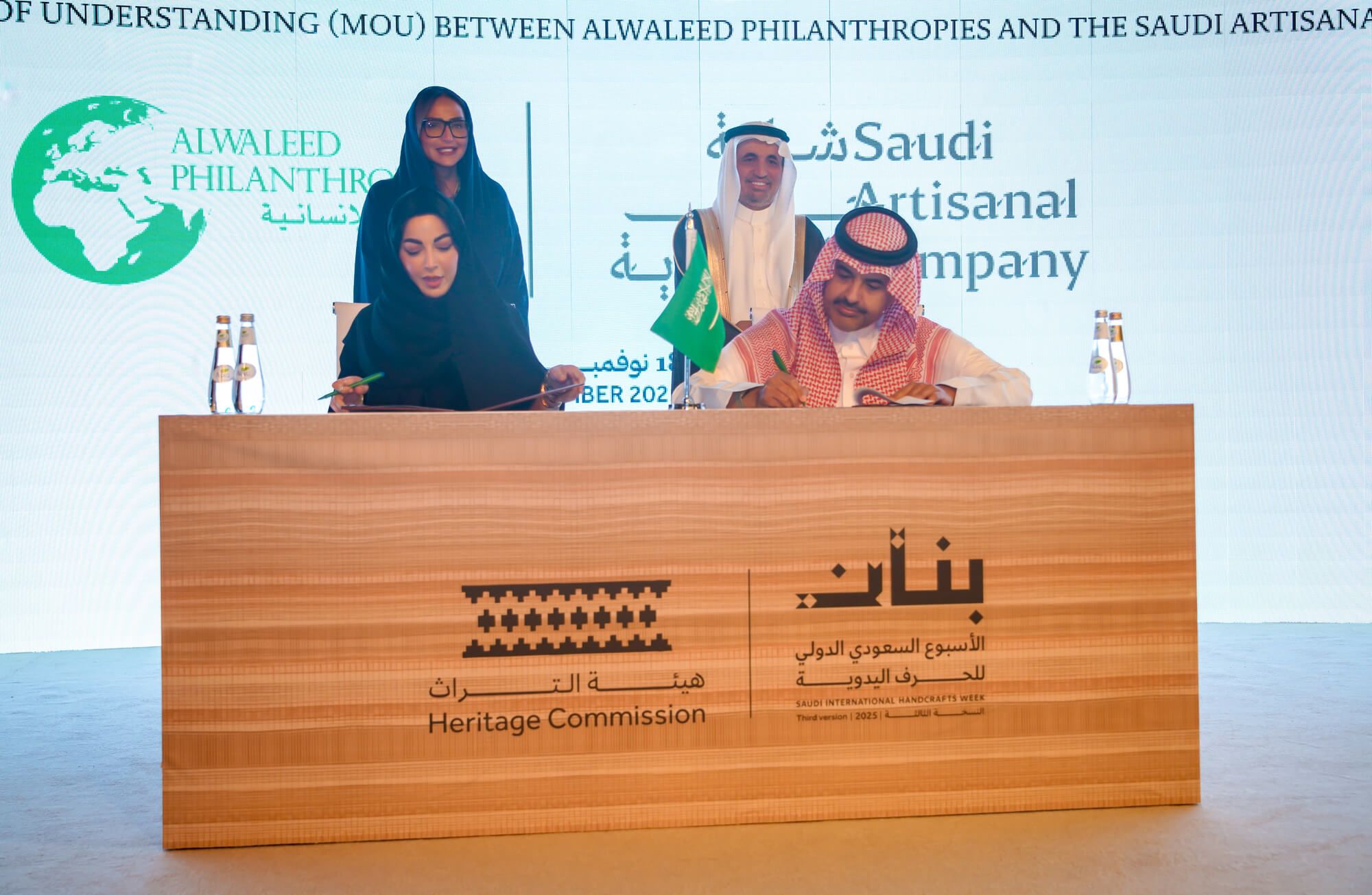 وقّعت مؤسسة الوليد للإنسانية، والتي يرأسها صاحب السمو الملكي الأمير الوليد بن طلال آل سعود، وشركة حرف السعودية، مذكرة تفاهم تهدف إلى دعم وتمكين الحرفيين السعوديين وتطوير المنتجات الحرفية المحلية عبر برامج ومبادرات مشتركة تُسهم في تحقيق الاستدامة الاجتماعية والاقتصادية، انسجامًا مع مستهدفات رؤية المملكة 2030 في دعم الصناعات الثقافية وتمكين الكفاءات الوطنية.