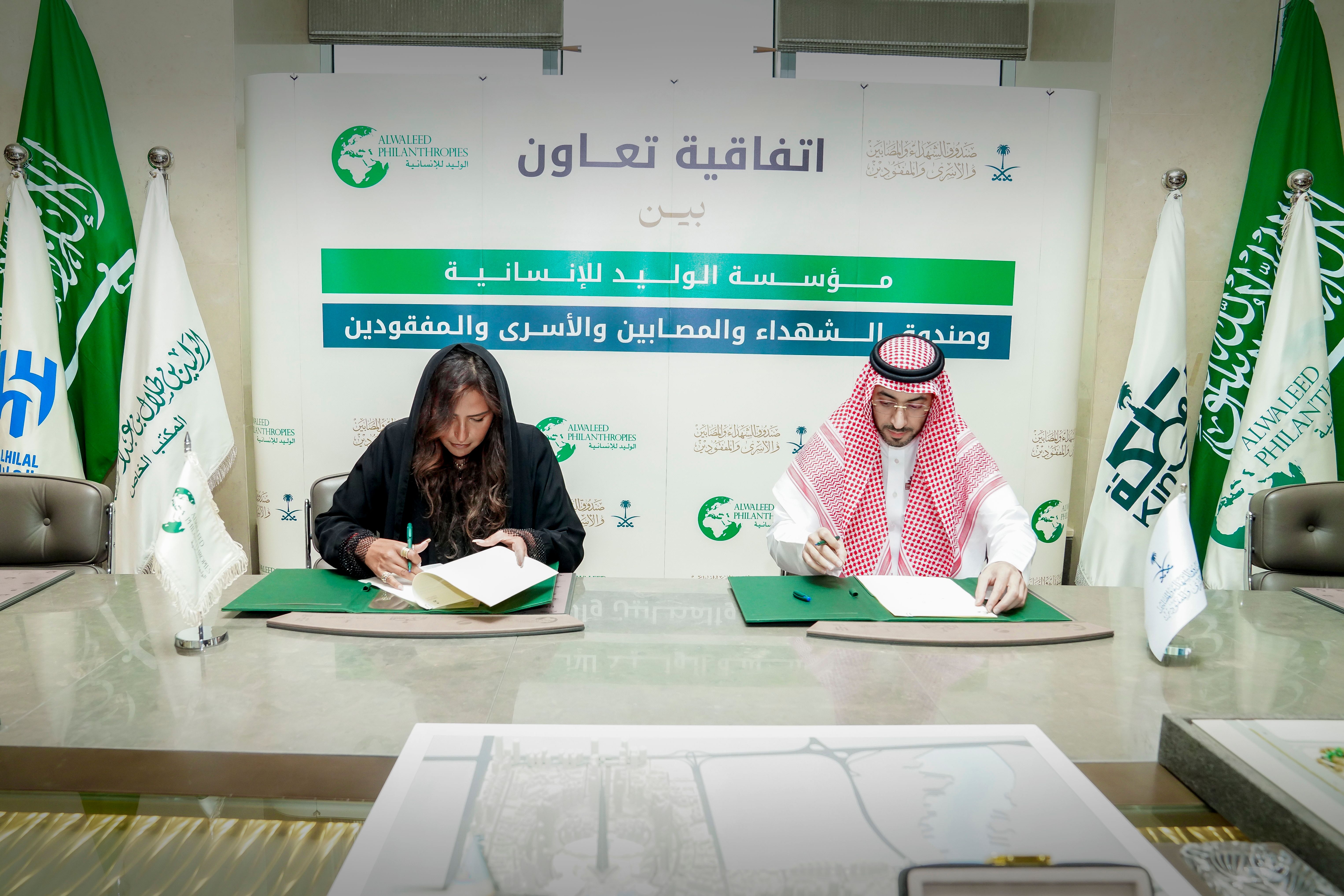 وقّعت مؤسسة الوليد للإنسانية، والتي يرأسها صاحب السمو الملكي الأمير الوليد بن طلال آل سعود، مع صندوق الشهداء والمصابين والأسرى والمفقودين اتفاقية تعاون بهدف دعم البرامج والمبادرات التنموية وتعظيم أثرها. وتتضمن الاتفاقية التي وقعتها الأمين العام لمؤسسة الوليد للإنسانية، صاحبة السمو الملكي الأميرة لمياء بنت ماجد آل سعود، وسعادة الأستاذ طلال بن عثمان المعمر، الأمين العام لصندوق الشهداء والمصابين والأسرى والمفقودين، تقديم حزمة من المنتجات والخدمات لدعم وتمكين مستفيدي الصندوق.